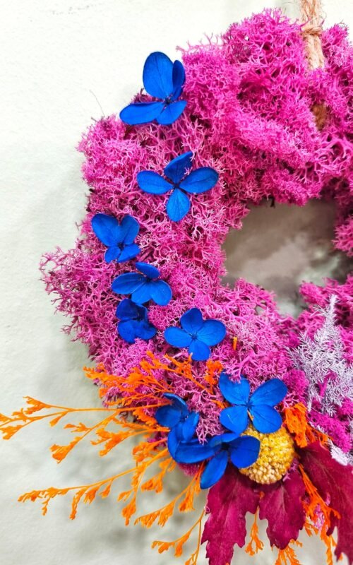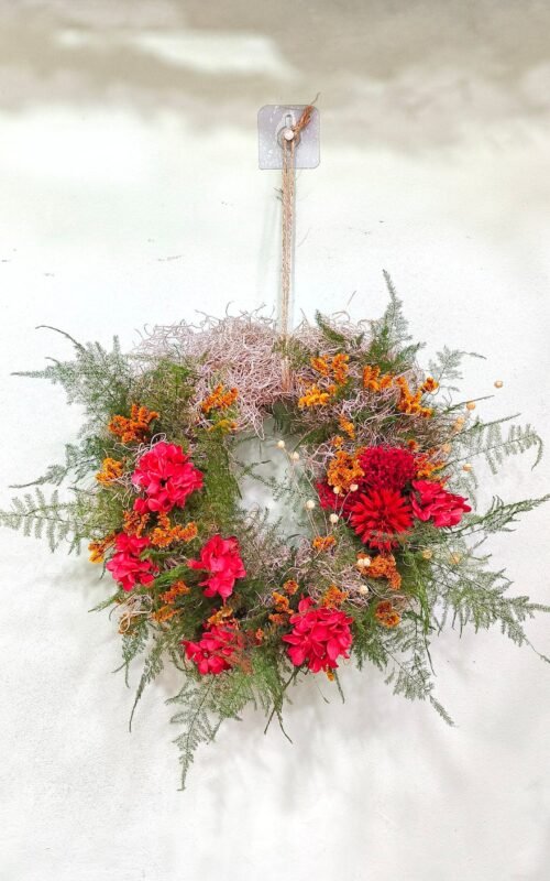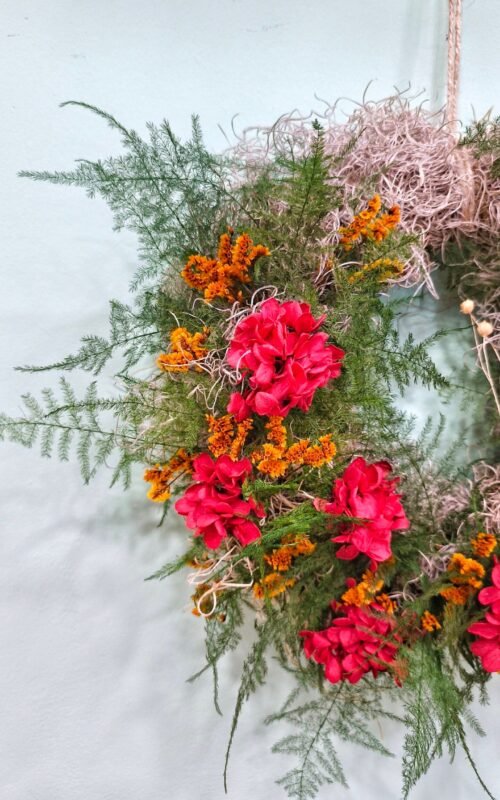 Coronas hechas a mano con flores preservadas y secas. Estilos para toda la época de año, no sólo Navidad. Las coronas sirven para decorar todo tipo de espacios en tu hogar.