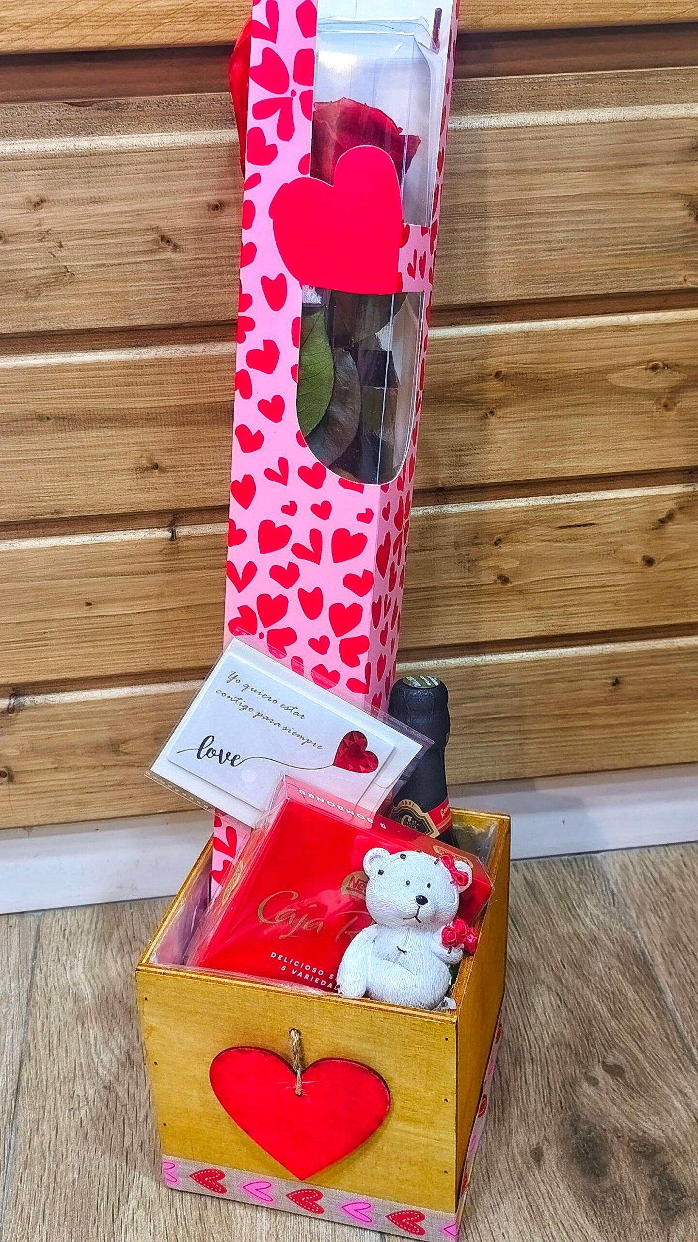 – 1 Caja de madera con corazones