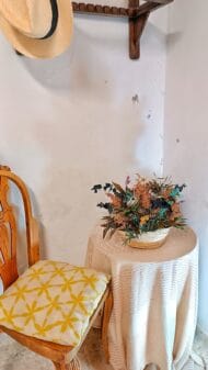 El capazo, de mimbre, aporta un toque rústico y artesanal. La combinación de colores y texturas crea un impacto visual atractivo, ideal para decorar cualquier espacio con un toque de naturaleza y alegría.