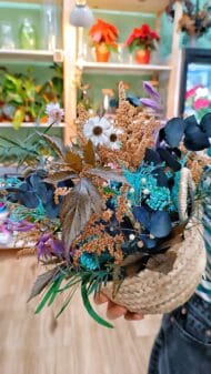 Capazo Azul de Flores Secas y Preservadas