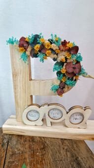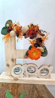 Papá en madera realizada artesanalmente y rellenada con flores preservadas y secas que no tienen mantenimiento