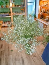 La paniculata, también conocida como “gypsophila”, es una flor de pequeñas flores blancas agrupadas en delicadas cabezas que forman una nube etérea y eternamente romántica. Originaria de Europa y Asia, esta flor se ha convertido en un elemento esencial en la decoración de bodas en todo el mundo, gracias a su aspecto delicado y su capacidad para complementar una amplia gama de estilos y temas.
